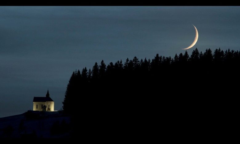 عکس روز ناسا هلال ماه را طوری نشان می‌دهد که گویی در حال بازی با یک کلیسای کوهستانی است.